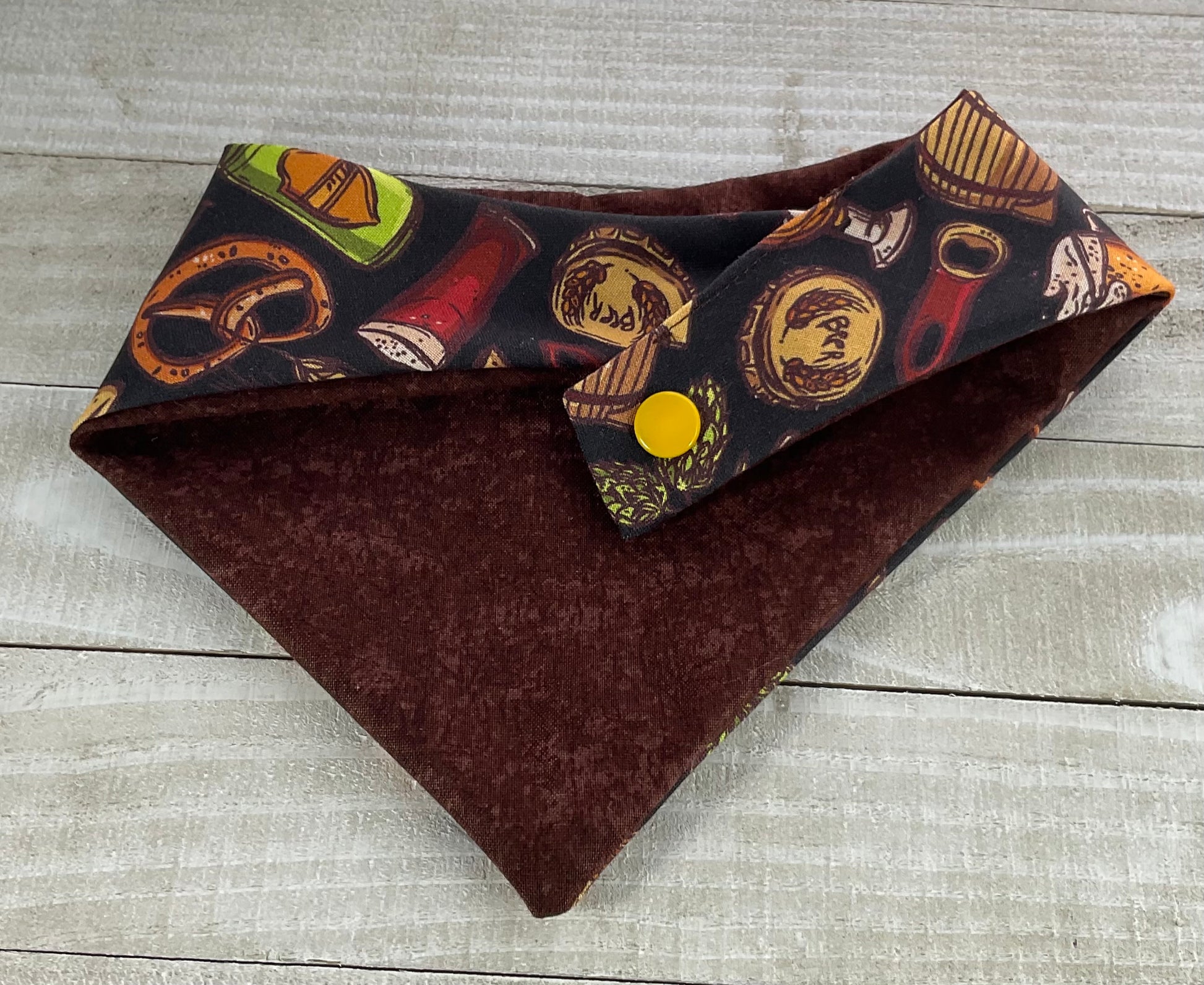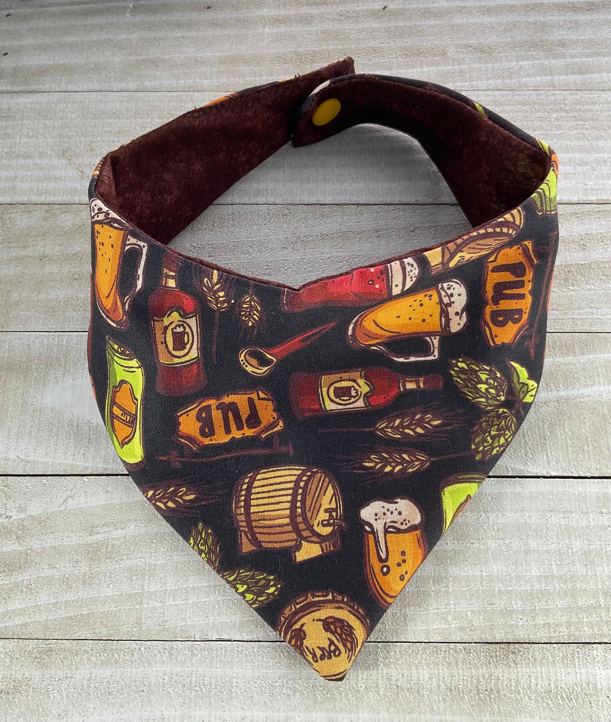 PUB GARDEN Handcrafted reversible dog bandanas. Two side to every bandana. Snap closure available in sizes XS-XL.